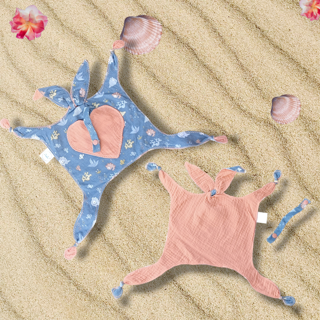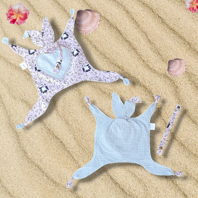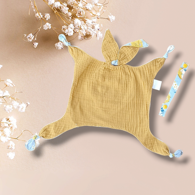 Doudou Lapin ou tortue Range Tétine - Coton & Gaze