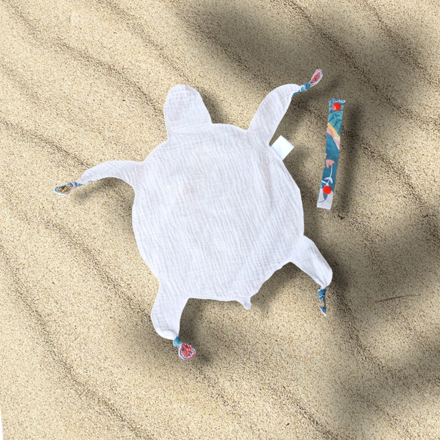 Doudou Tortue Range Tétine "Papaya" - Coton & Minky