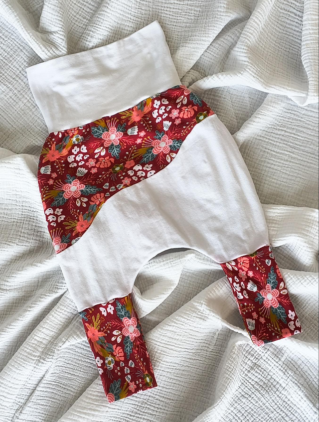 Sarouel Bébé Long Évolutif Jersey Coton Fleurs rouges/Blancs