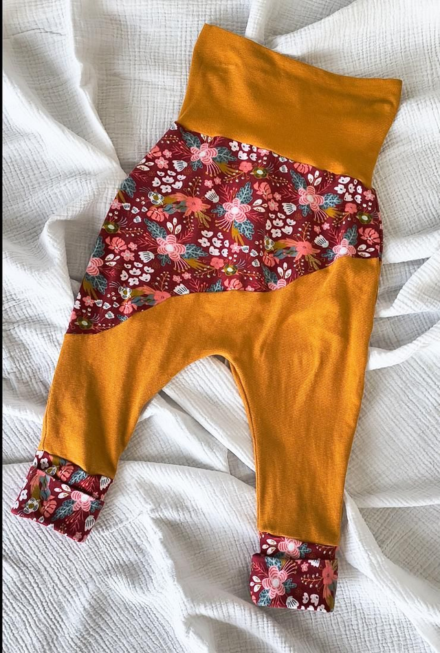 Sarouel Bébé Long Évolutif Jersey Coton Fleurs Rouges/Ocre